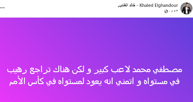 مصطفي محمد لاعب كبير و لكن هناك تراجع رهيب في مستواه و اتمني انه يعود لمستواه في كأس الأمم