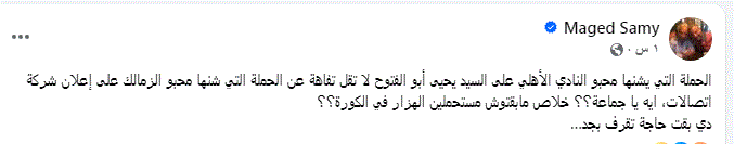 “الحملة التي يشنها محبو النادي الأهلي على السيد يحيى أبو الفتوح لا تقل تفاهة عن الحملة التي شنها محبو الزمالك على إعلان شركة اتصالات