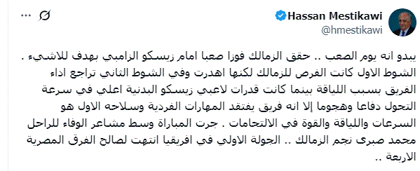 وكتب حسن المستكاوي من خلال حسابه على موقع التواصل الاجتماعي اكس قائلا: