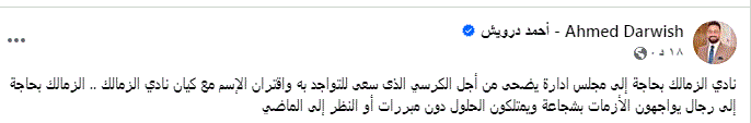 وكتب أحمد درويش من خلال حسابه على موقع التواصل الاجتماعي فيسبوك قائلا: