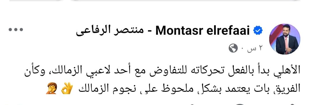 كشف منتصر الرفاعي من خلال حسابه على موقع التواصل الاجتماعي فيسبوك تحدث قائلاً نصا: