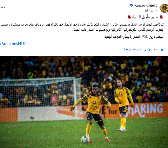 أعلن نادي كايزر تشيفيز الجنوب أفريقي عن تأجيل مباراة له في دوري بلاده استعدادا لمواجهه الزمالك