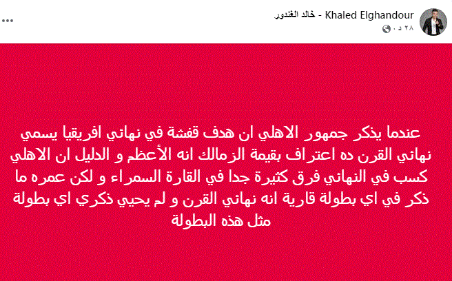 عندما يذكر جمهور الاهلي ان هدف قفشة في نهائي افريقيا يسمي نهائي القرن ده اعتراف بقيمة الزمالك انه الأعظم