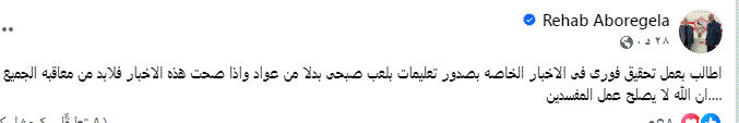 رحاب أبو رجيلة عضو مجلس ادارة الزمالك السابق من خلال حسابه على موقع التواصل الاجتماعي فيسبوك كتب قائلا:
