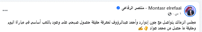 وكتب منتصر الرفاعي من خلال حسابه على موقع التواصل الاجتماعي فيسبوك قائلا: