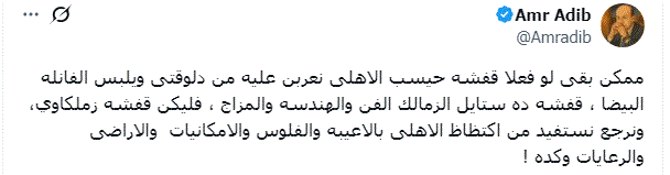 تمنى الاعلامي عمرو أديب انضمام اللاعب محمد مجدي افشة لاعب الأهلي الى صفوف نادي الزمالك