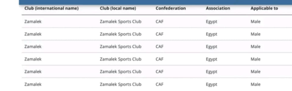 كشف التحديث الجديد للاتحاد الدولي لكرة القدم عن ايقاف قيد جديد لنادي الزمالك