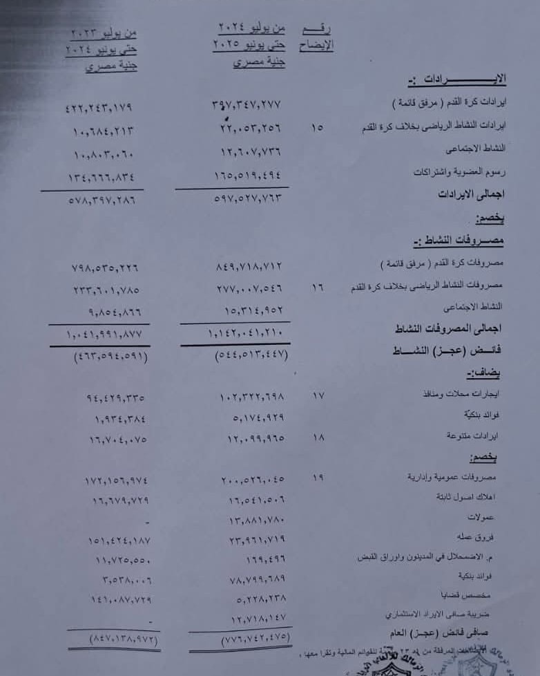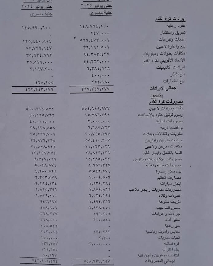 وبحسب الميزانية، فقد حقق نشاط كرة القدم إيرادات قدرها 397 مليون و347 ألفًا و277 جنيه خلال العام الماضي، في الوقت الذي وصلت فيه المصروفات إلى 758 مليون و637 ألف و697 جنيه.