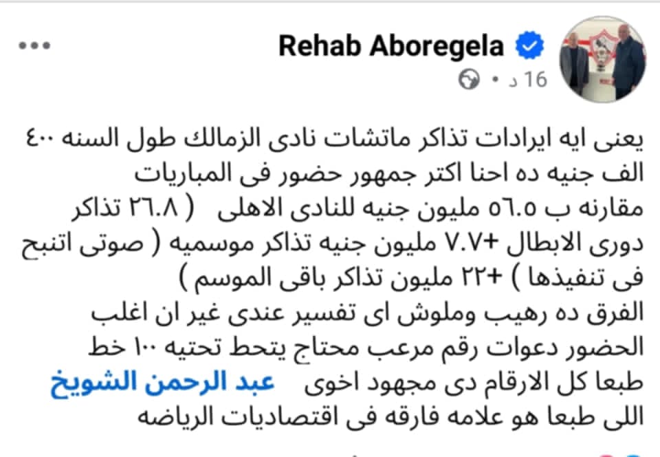 وعبر صفحته الشخصية على موقع التواصل الاجتماعى فيس بوك كتب رحاب أبورجيلة معلقاً :
