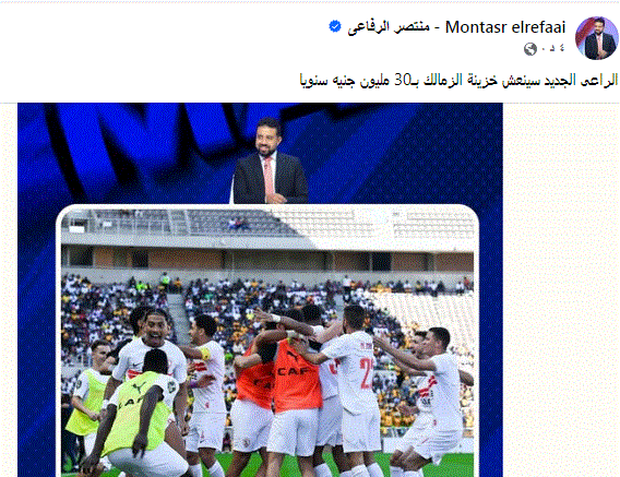 تحدث الكاتب الصحفي متنتصر الرفاعي عن 30 مليون جنيه سنويا سيدخلوا خزينة نادي الزمالك الفترات القادمة