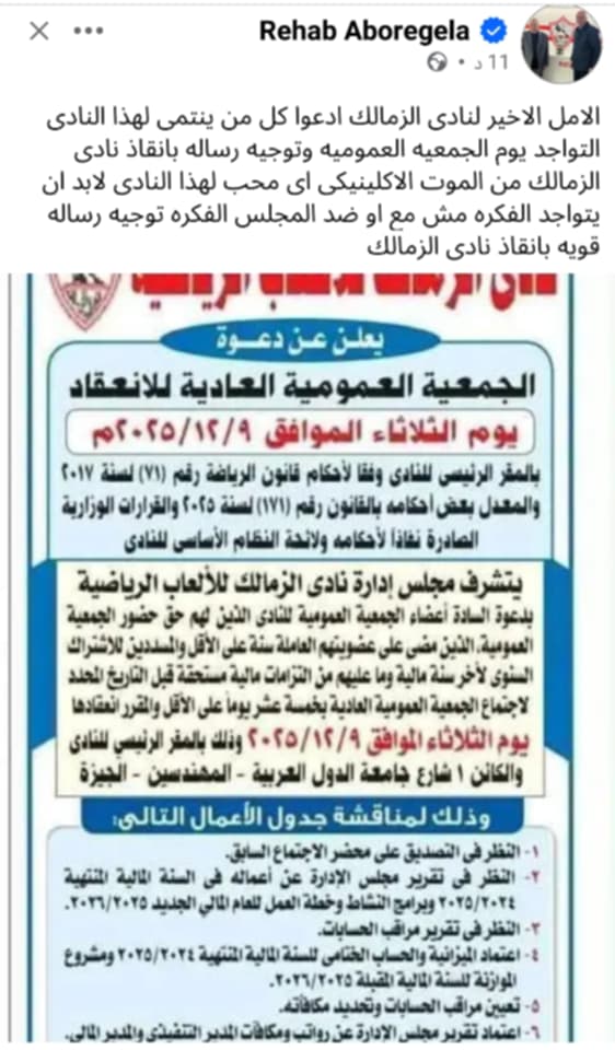 الامل الاخير لنادى الزمالك ادعوا كل من ينتمى لهذا النادى التواجد يوم الجمعيه العموميه وتوجيه رساله بانقاذ نادى الزمالك من الموت الاكلينيكى.