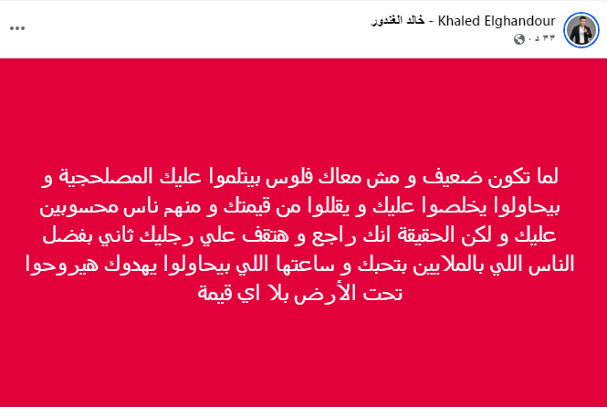 وعبر صفحته الشخصية على موقع التواصل الاجتماعى فيس بوك كتب خالد الغندور قائلاً معلقاً :