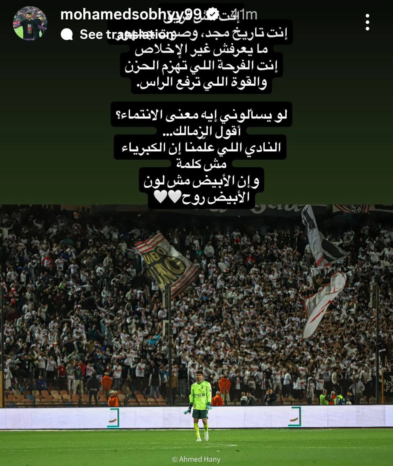 محمد صبحي حارس مرمى الزمالك من خلال حسابه على موقع التواصل الاجتماعي فيسبوك تحدث قائلا: