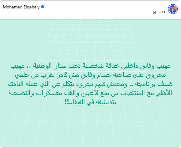وعبر صفحته الشخصية على موقع التواصل الاجتماعى فيس بوك كتب محمد الجبالى قائلاً :
