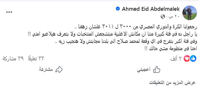 علق نجم الفريق الاول الكروى فى النادى الاسبق، احمد عيد عبد الملك، على اخفاقات المنتخبات الوطنيه خلال الفتره الماضيه.