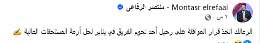 وكتب منتصر الرفاعي من خلال حسابه على موقع التواصل الاجتماعي فيسبوك قائلا: