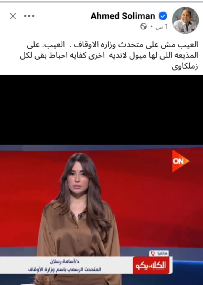 العيب مش على متحدث وزاره الاوقاف . العيب. على المذيعه اللى لها ميول لانديه اخرى كفايه احباط بقى لكل زملكاوى