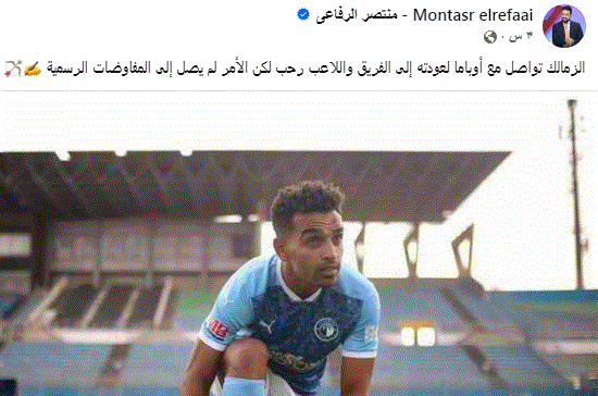 الزمالك تواصل مع أوباما لعودته إلى الفريق واللاعب رحب لكن الأمر لم يصل إلى المفاوضات الرسمية