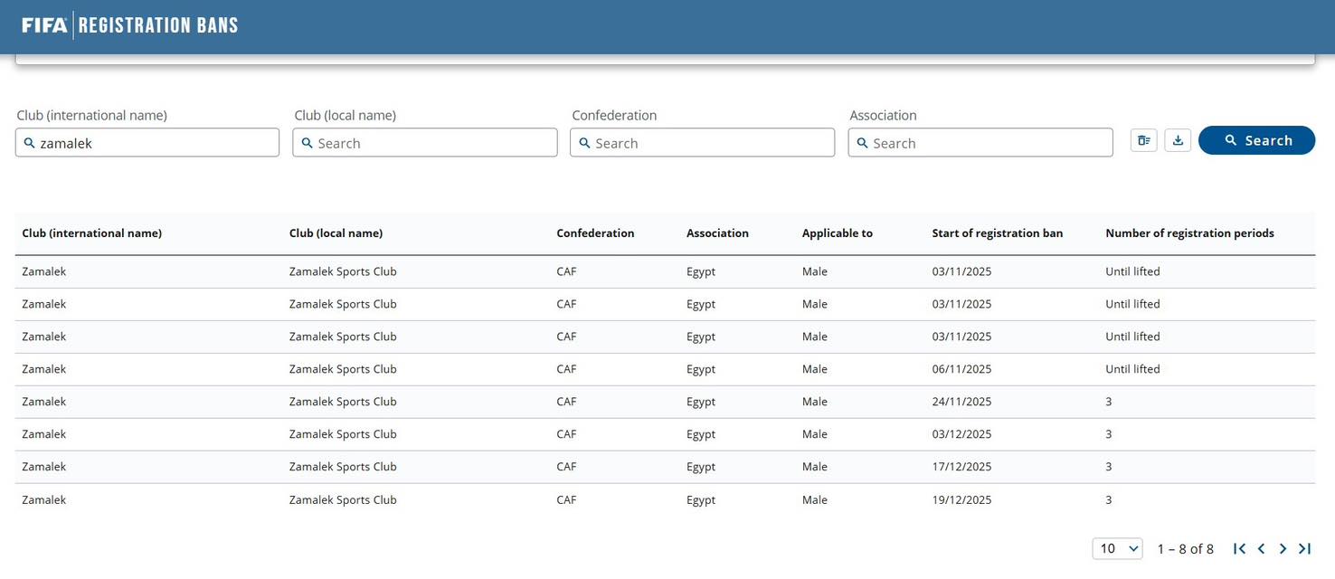 يعتبر هذا الإيقاف الثامن للزمالك في سلسلة من العقوبات المتعلقة بمستحقات لاعبين وأندية ما يعكس استمرار المشاكل المالية للنادي.