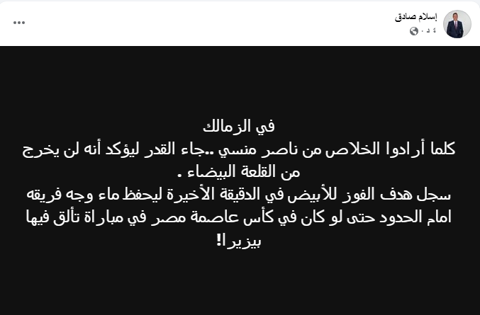 وعبر صفحته الشخصية على موقع التواصل الاجتماعى فيس بوك كتب إسلام صادق قائلاً :