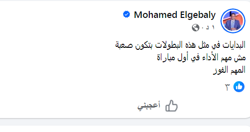 وعبر صفحته الشخصية على موقع التواصل الاجتماعى فيس بوك كتب محمد الجبالى قائلاً :