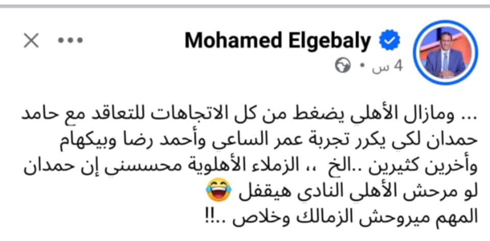 الزملاء الأهلوية محسسني إن حمدان لو مرحش الأهلي النادي هيقفل
