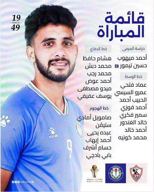 وجاءت قائمة سموحة لمواجهة الزمالك على النحو الاتى :