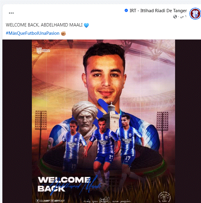 ونشر نادي اتحاد طنجة برومو ترحيبي باللاعب عبد الحميد معالي، في اشارة الى التوقيع رسمي معه