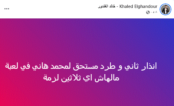 علق الاعلامي خالد الغندور نجم الزمالك السابق على حالة طرد اللاعب محمد هاني لاعب منتخب مصر.