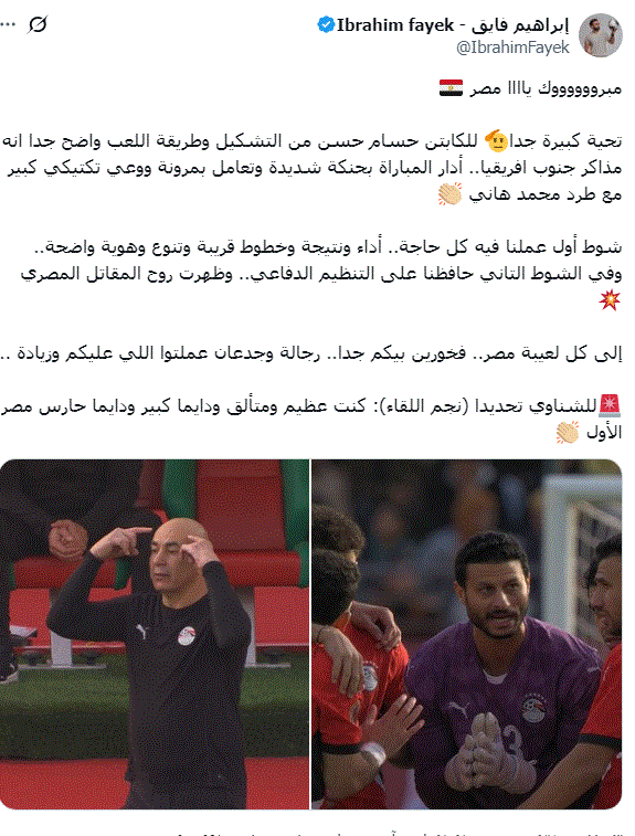 وكتب ابراهيم فايق من خلال حسابه على موقع التواصل الاجتماعي اكس قائلا: