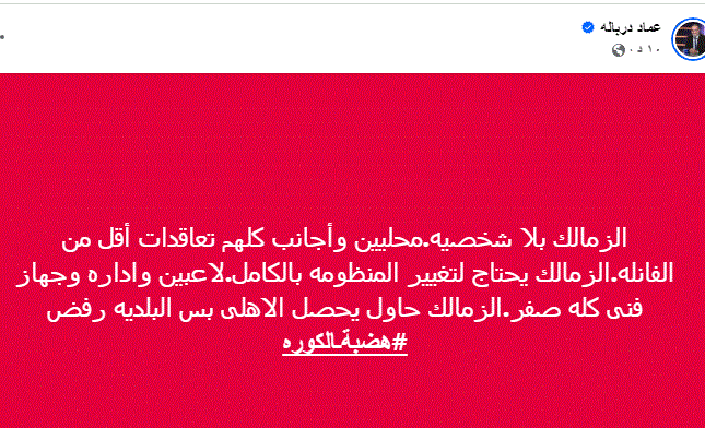عماد دربالة من خلال حسابه على موقع التواصل الاجتماعي فيسبوك تحدث قائلا: