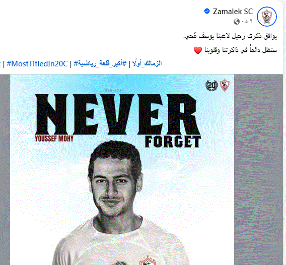 يوافق ذكرى رحيل لاعبنا يوسف مُحي .. ستظل دائماً في ذاكرتنا وقلوبنا