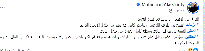 وضع محمود الأسيوطي مالك نادي لافيينا مقارنة بين الاهلي والزمالك في طريقة فسخ العقود