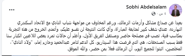 وعبر صفحته الشخصية على موقع التواصل الاجتماعى فيس بوك كتب صبحى عبدالسلام قائلاً :