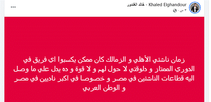 خالد الغندور من خلال حسابه على موقع التواصل الاجتماعي فيسبوك تحدث قائلاً نصا: