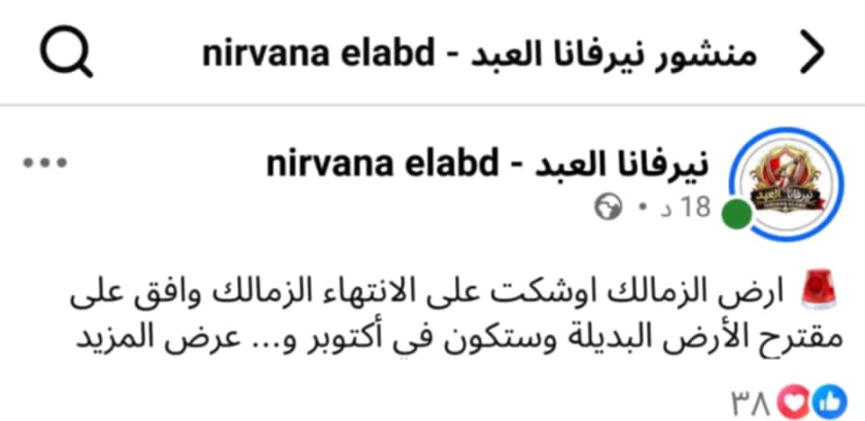 الارض الذى أصبح مصيرها محسوم بكل أسف، ادارة الزمالك وافقت على مقترح الأرض البديلة، لتؤكد نيرفانا هذا الحديث المعروف.
