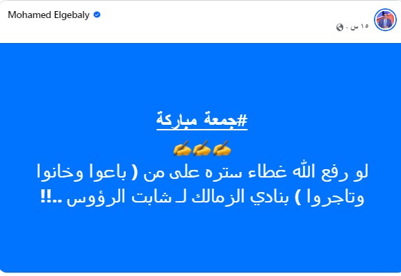 حيث أشار الى من باع وخان وتاجر بإسم النادى، وكانوا سبب ما وصل اليه حال النادى الكبير.