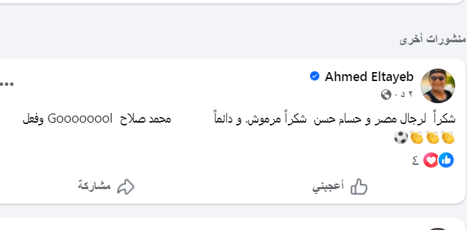 شكراً لرجال مصر و حسام حسن شكراً مرموش. و دائماً محمد صلاح Goooooool وفعل