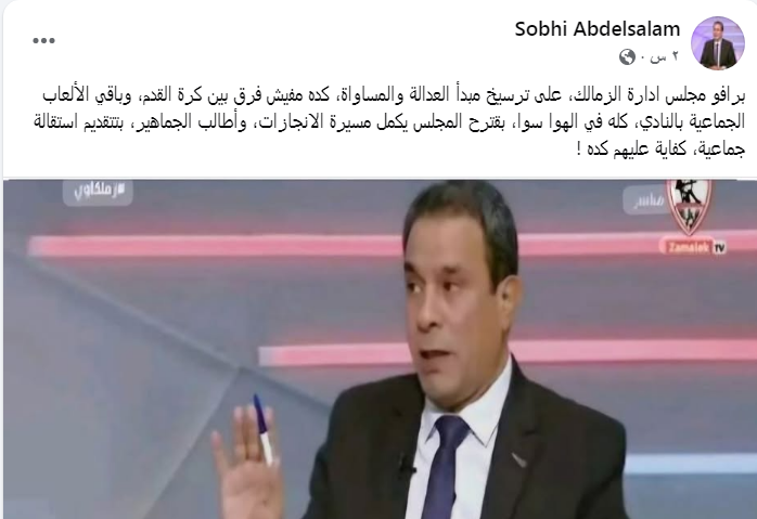 برافو مجلس ادارة الزمالك، على ترسيخ مبدأ العدالة والمساواة، كده مفيش فرق بين كرة القدم، وباقي الألعاب الجماعية بالنادي، كله في الهوا سوا،
