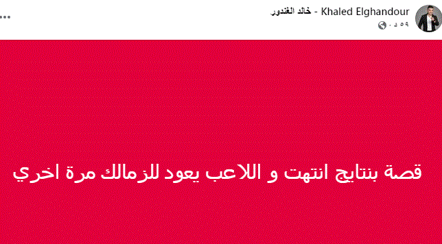 قصة بنتايج انتهت و اللاعب يعود للزمالك مرة اخري
