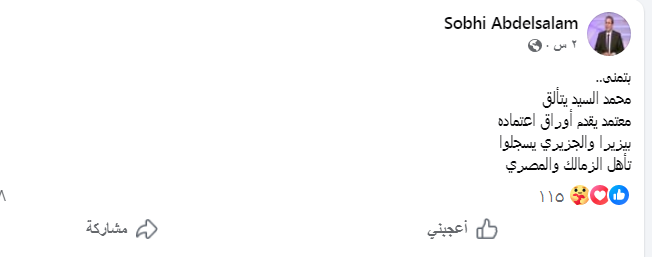وعبر صفحته الشخصية على موقع التواصل الاجتماعى فيس بوك كتب صبحى عبدالسلام قائلاً :