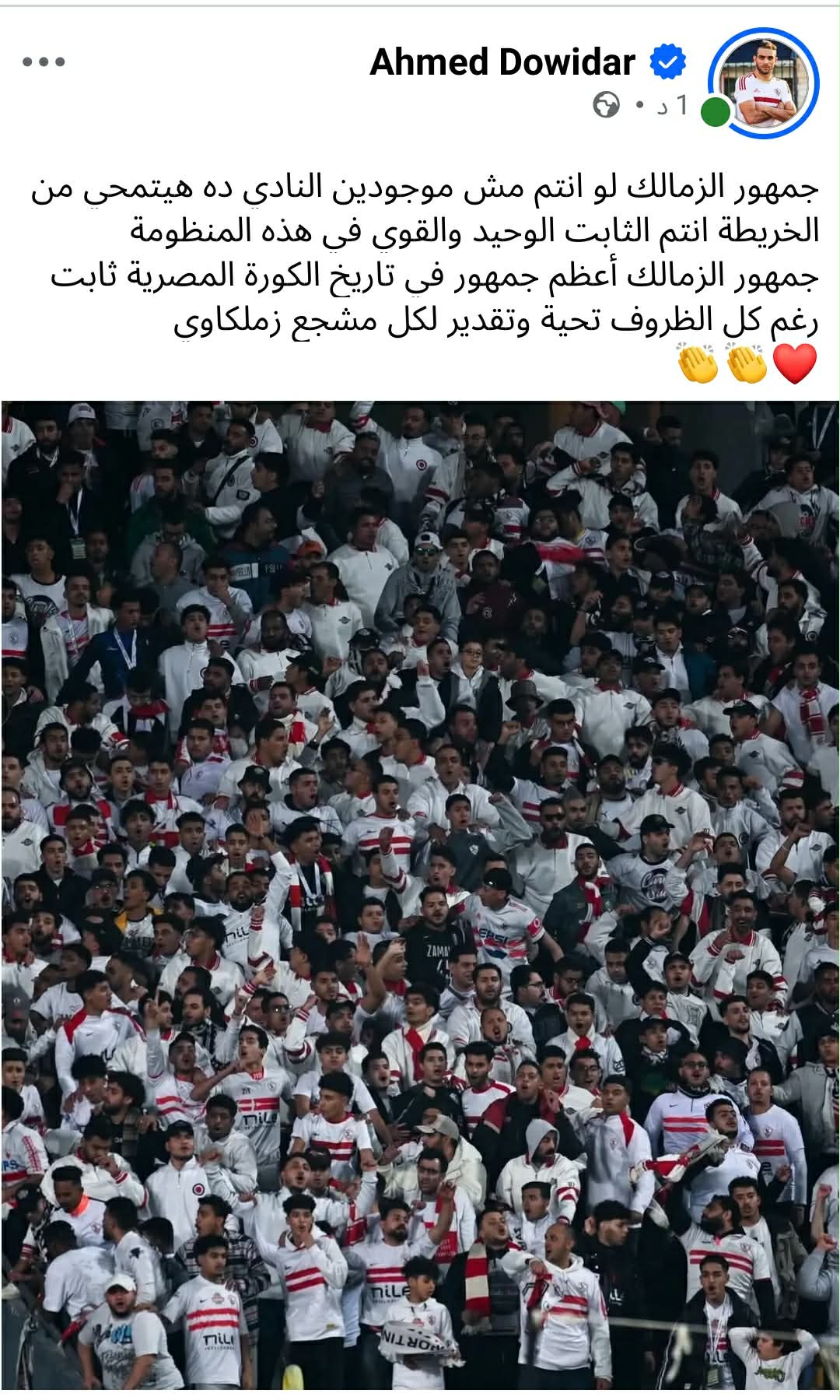 جمهور الزمالك أعظم جمهور في تاريخ الكورة المصرية ثابت رغم كل الظروف تحية وتقدير لكل مشجع زملكاوي