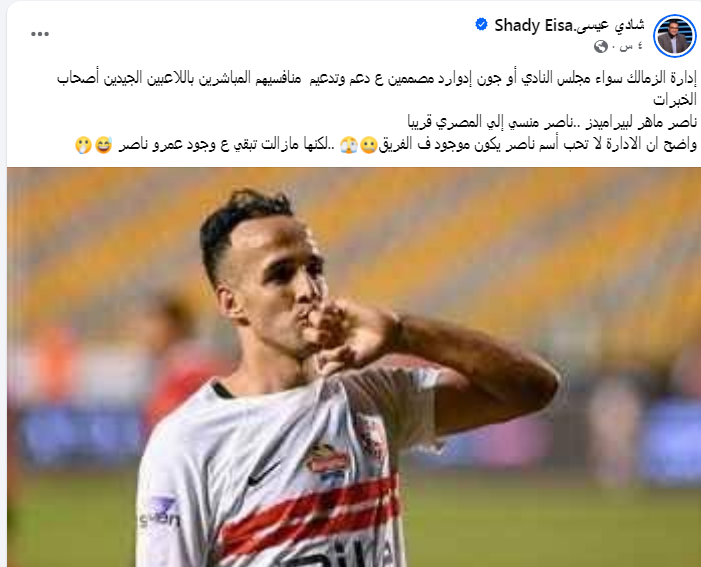 واضح ان الادارة لا تحب أسم ناصر يكون موجود ف الفريق ..لكنها مازالت تبقي ع وجود عمرو ناصر