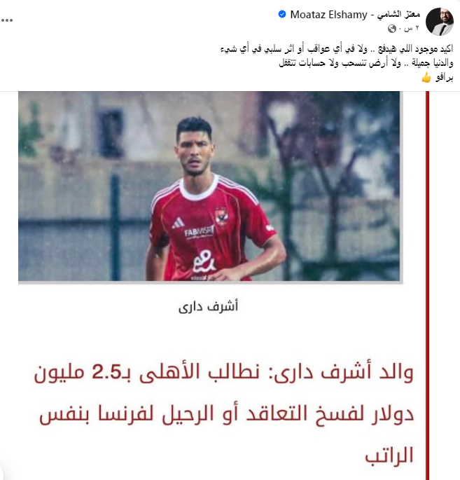 وعبر صفحته الشخصية على موقع التواصل الاجتماعى فيس بوك كتب معتز الشامي قائلاً :