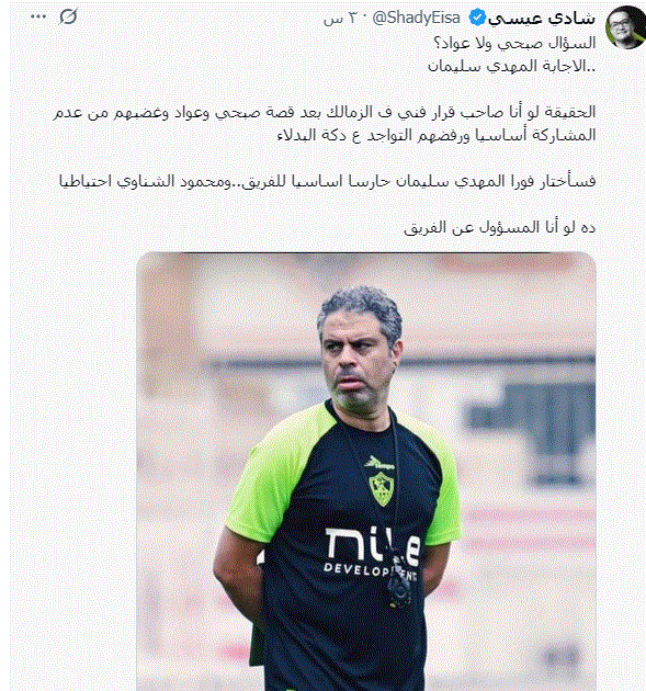 شادي عيسى من خلال حسابه على موقع التواصل الاجتماعي اكس كتب قائلا: