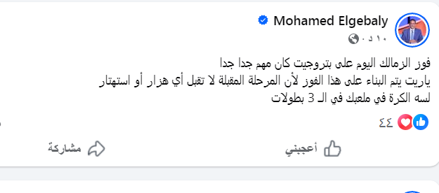 وعبر صفحته الشخصية على موقع التواصل الاجتماعى فيس بوك كتب محمد الجبالى قائلاً معلقاً :
