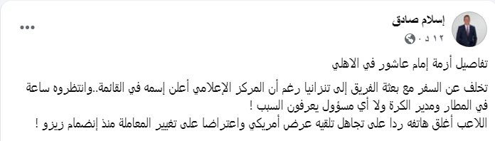 وعبر صفحته الشخصية على موقع التواصل الاجتماعى فيس بوك كتب إسلام صادق قائلاً :