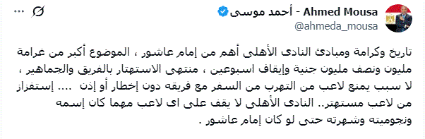 شن الاعلامي احمد موسي هجوم كبير على اللاعب امام عاشور لاعب الأهلي.