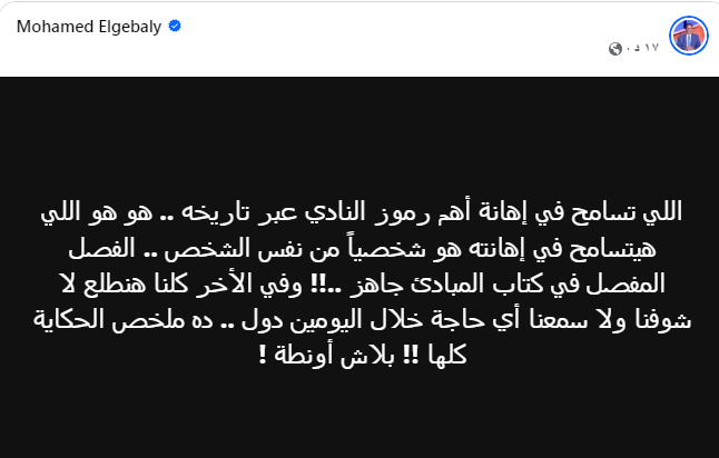 اللي تسامح في إهانة أهم رموز النادي عبر تاريخه .. هو هو اللي هيتسامح في إهانته هو شخصياً من نفس الشخص.