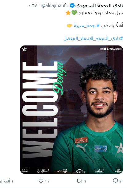 وعبر صفحة النادى الرسمية على موقع التواصل الاجتماعى إكس كتب نادي النجمة معلناً :